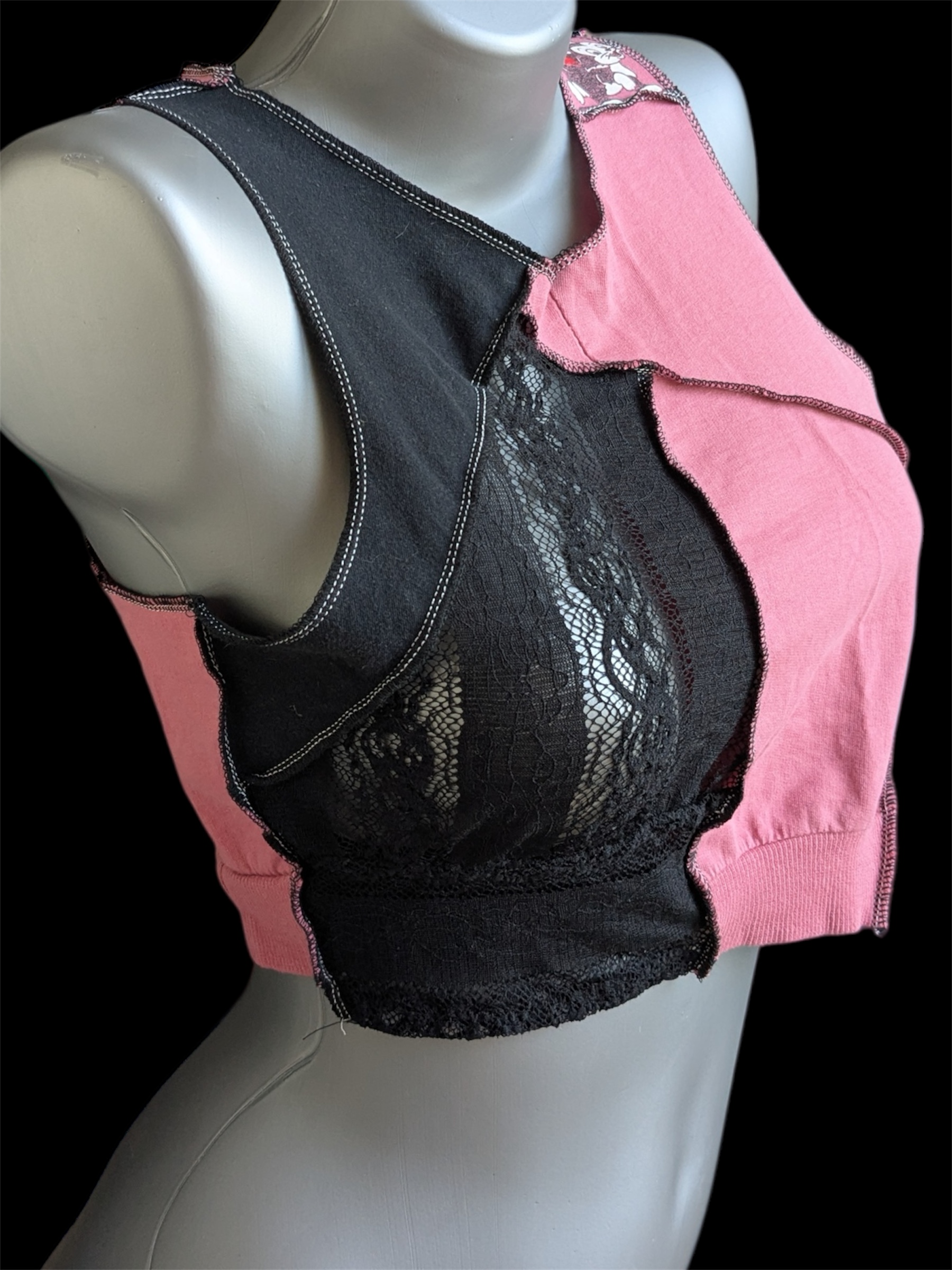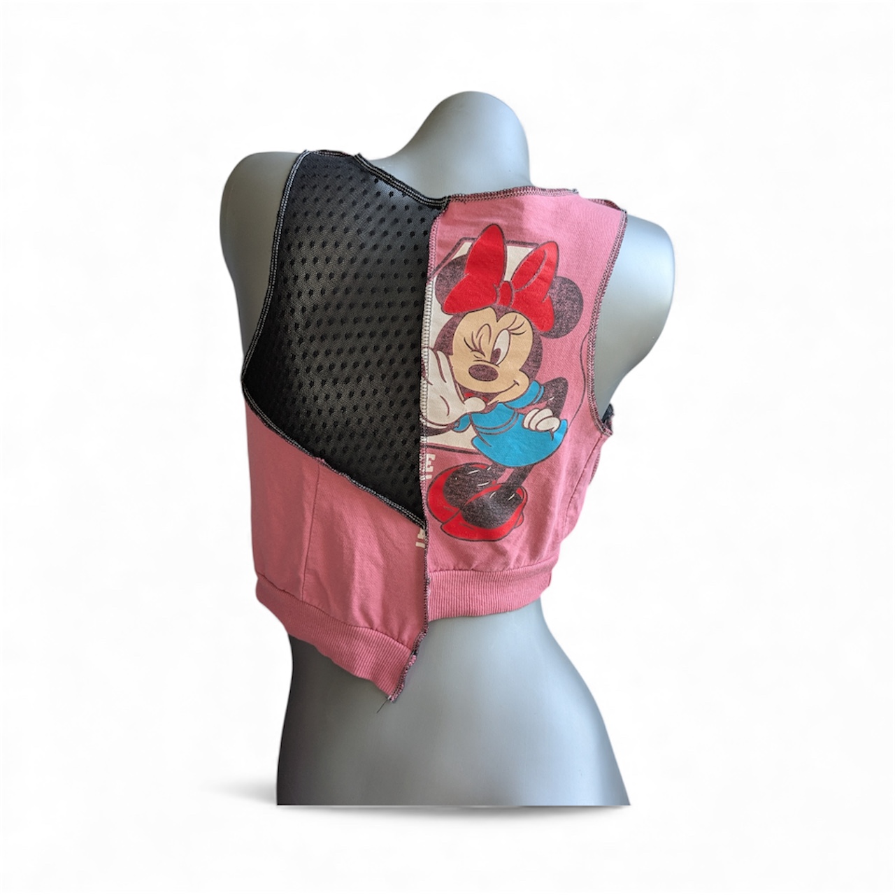 Made of carefully selected second hand cotton and polyester textile and mesh at the right places