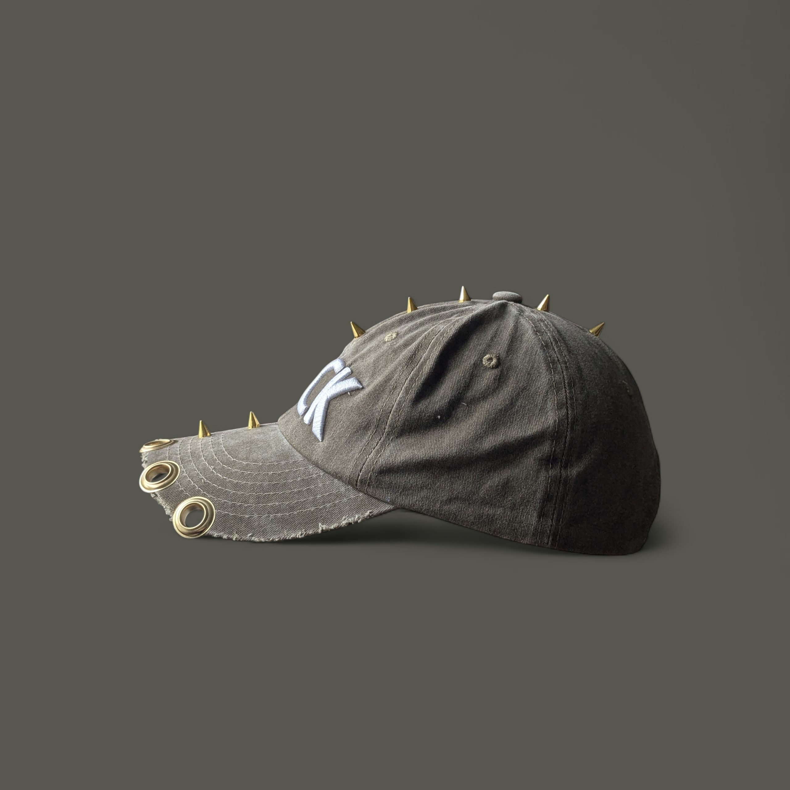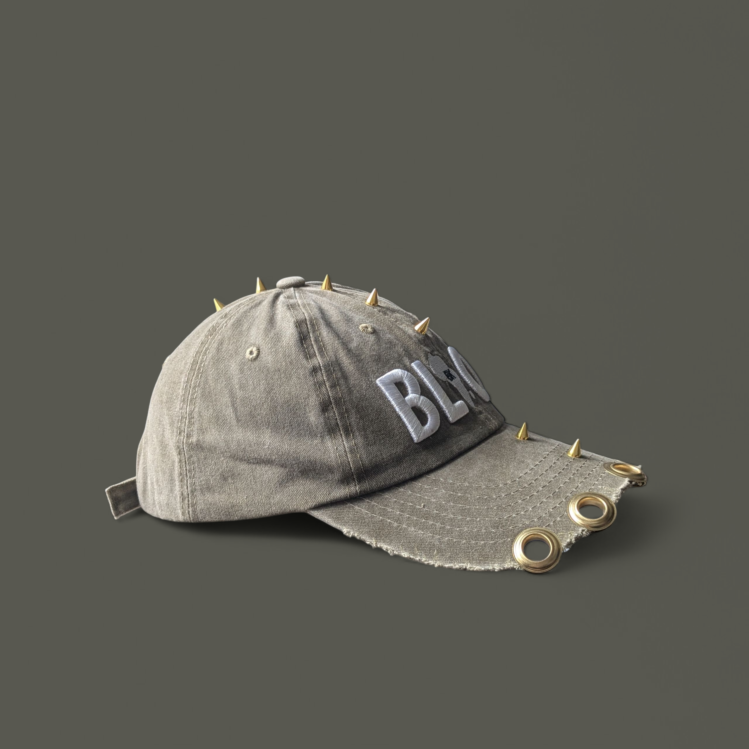 Upgraded, reworked, one of a kind design baseball cap with embroidery and gold hardware