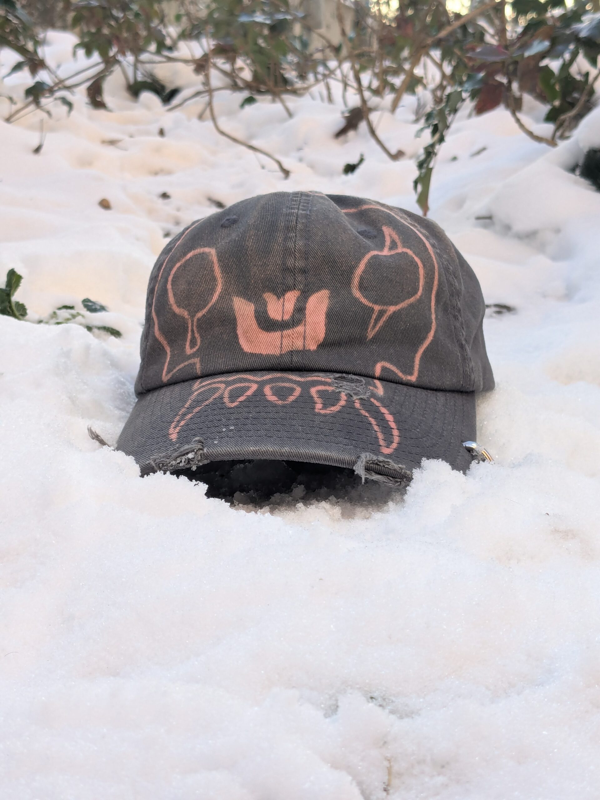 Reworked grey distressed cotton hat with DRENKROM skull and on chainmail on the side