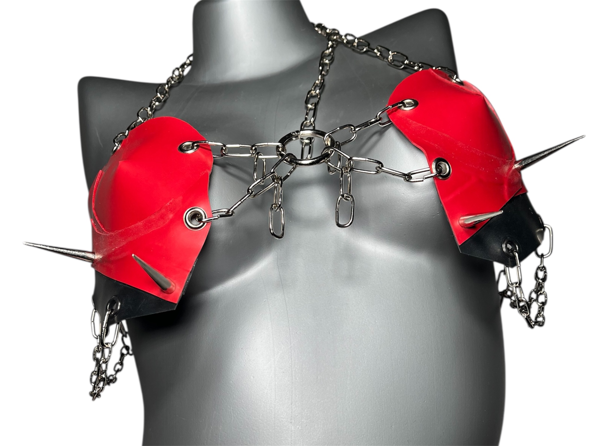 Size is adjustable with the chains around the neck, back and between the cups