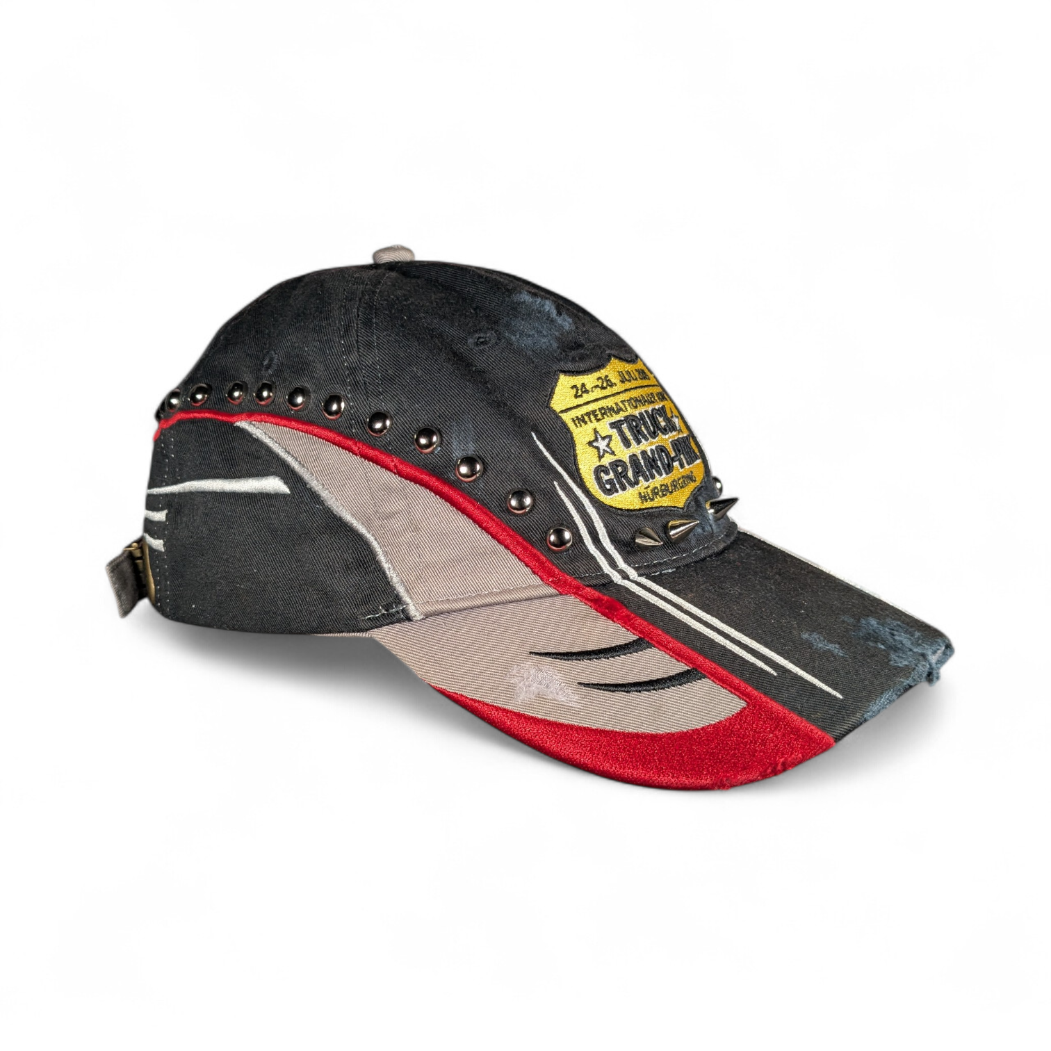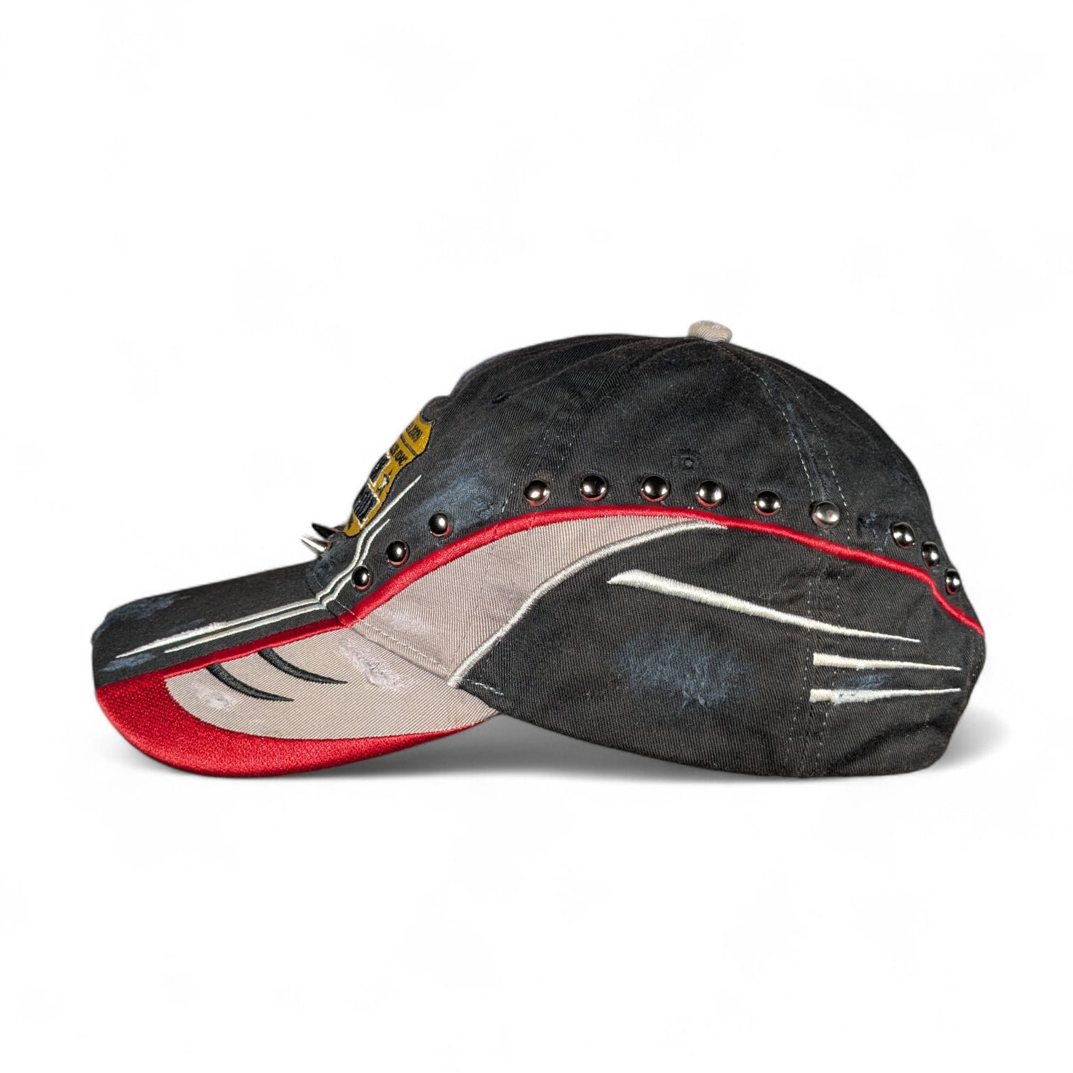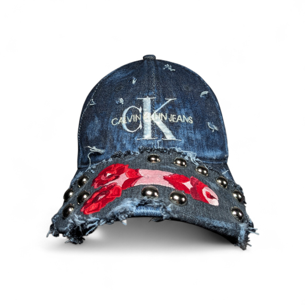 One of a kind distressed baseball cap with hardware