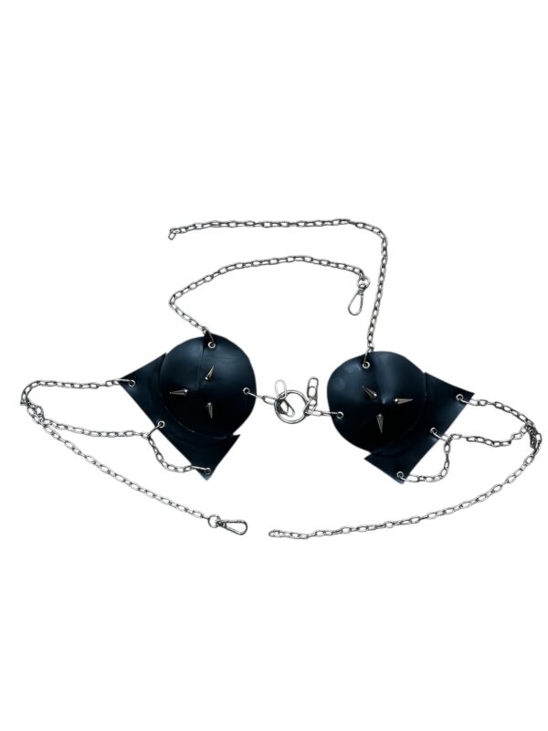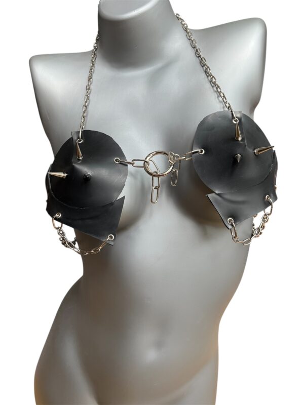 Size is adjustable due to chains on the back, around the neck and also between the bras