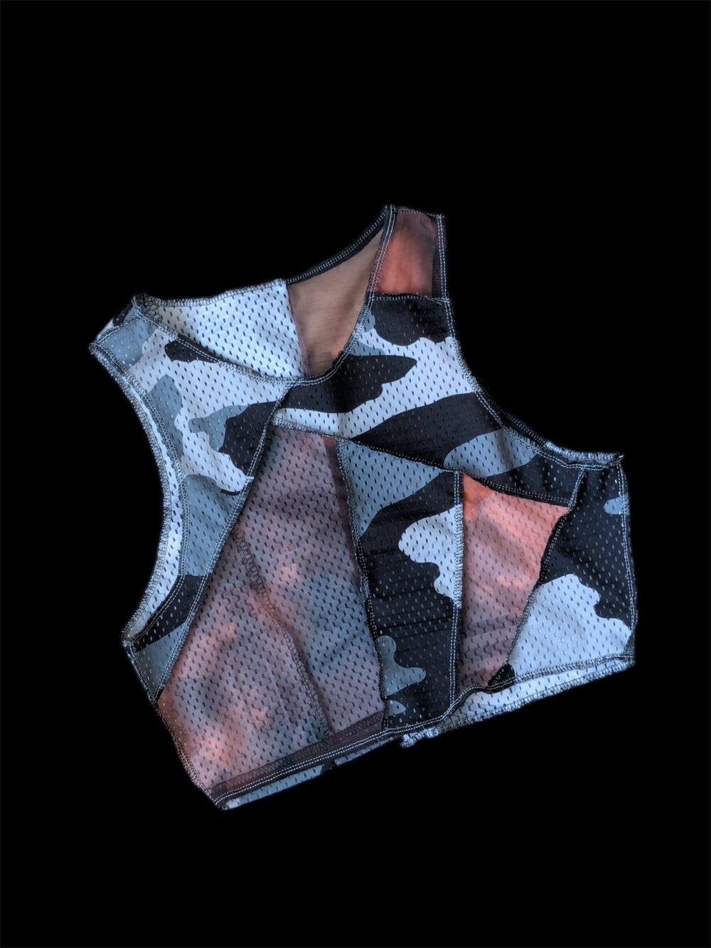 Made of carefully selected second hand cotton and polyester textile and mesh at the right places